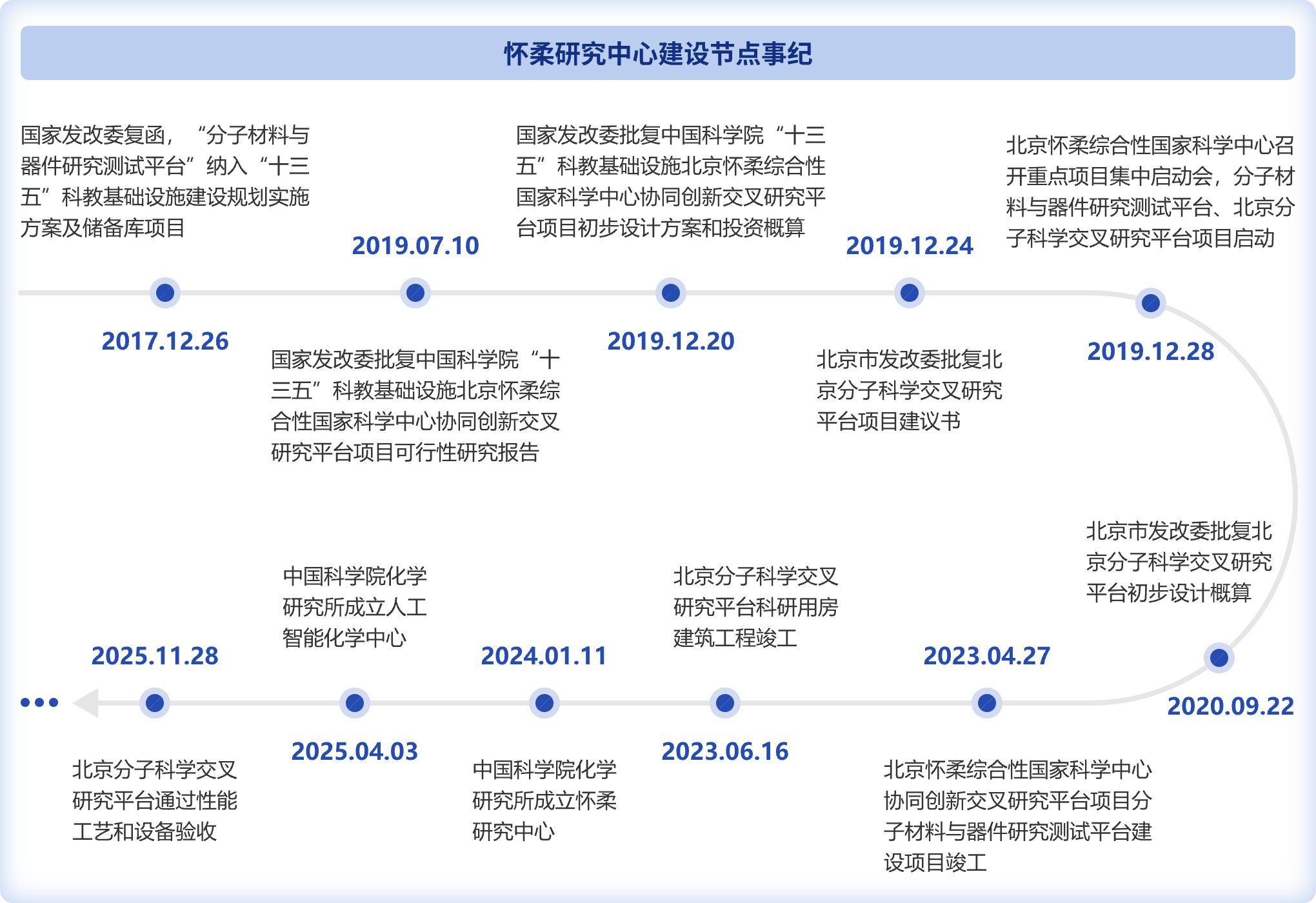 在怀柔科学城,化学研究所重点布局建设了两大平台:一是“十三五”科教基础设施项目“分子材料与器件研究测试平台”,二是院市共建第二批交叉项目“北京分子科学交叉研究平台”。依托上述平台,研究所于2024年1月11日正式成立怀柔研究中心,并同步启动人工智能化学中心的建设。