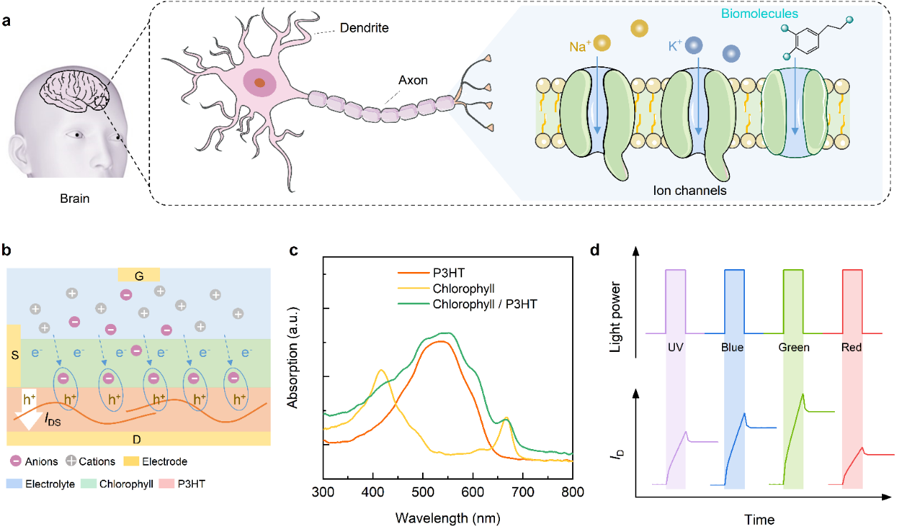 离子信号的传导能够使生物体在低压条件下高效地进行感知和学习。有机电化学晶体管(OECT)独特的离子‒电子耦合特性,使其具有低工作电压(<1 V)、高生物兼容性等优点,成为模拟生物神经功能的理想构筑单元。然而,低栅压情况下OECT中的离子会向电解质反向扩散,导致沟道电流迅速衰减,难以实现非易失性存储,这成为OECT在超低电压下模拟大脑学习与记忆功能的关键瓶颈。
