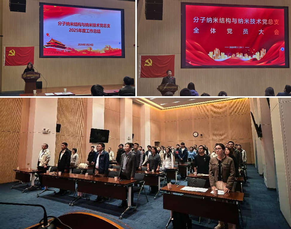 为深入贯彻落实新时代党的建设总要求,持续巩固“四强”党支部建设成果,落实化学所党委关于党建工作与科技创新深度融合的部署要求,分子纳米结构与纳米技术党总支于3月24日召开全体党员大会,全面总结党总支2025年度党建工作,会议由党总支副书记蒋礼主持。