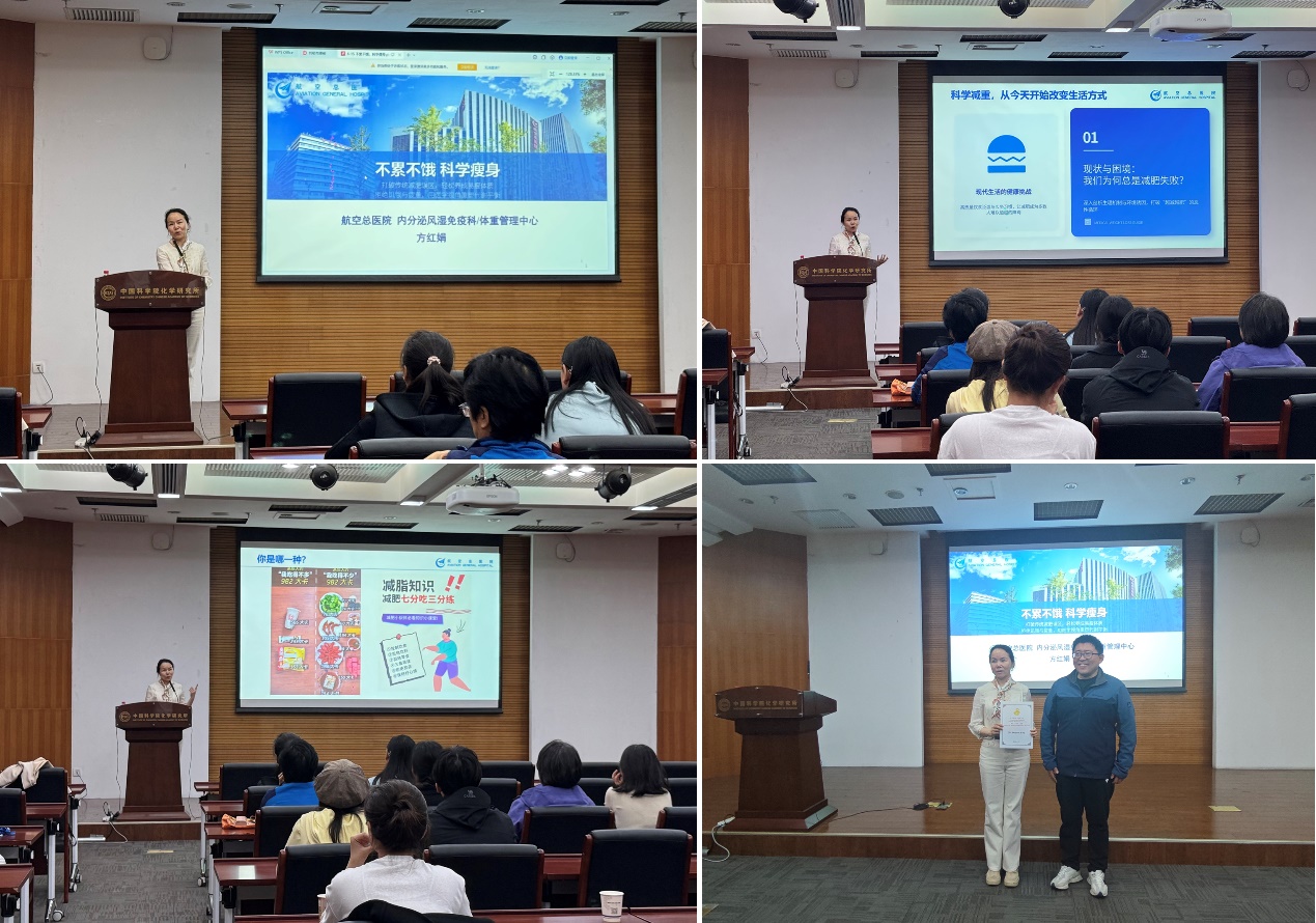4月15日下午,高分子物理与化学党总支联合分工会举办 “不累不饿,科学瘦身”主题健康讲座,特别邀请航空总医院内分泌风湿免疫科及体重管理中心方红娟主任作报告。党总支副书记王星主持讲座。