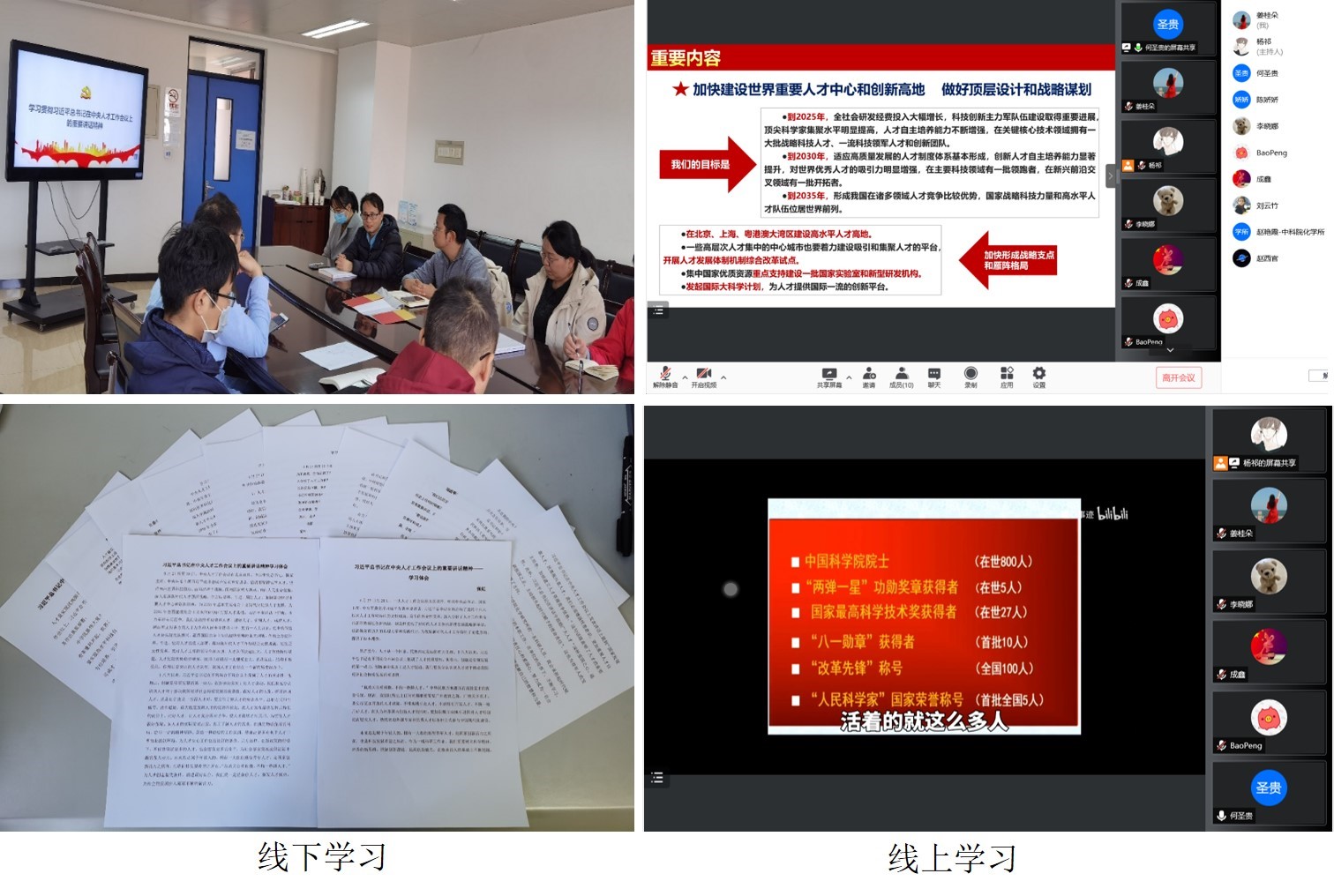 2021年11月2—4日,分子动态与稳态结构党支部组织党员学习习近平总书记在中央人才工作会议上的重要讲话以及老一辈科学家精神,活动以党小组为单位通过线上和线下的形式开展。