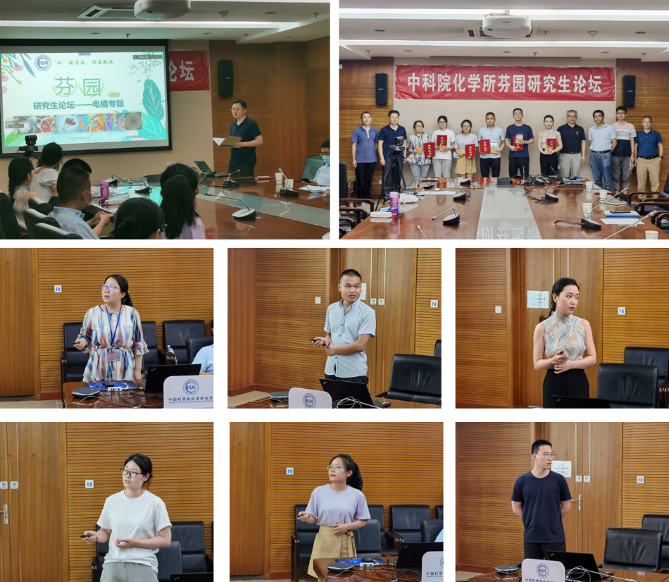 本次论坛特别邀请了分析测试中心电镜组组长关波老师作题为《冷冻电镜技术在化学材料领域的应用》的报告。此外,还邀请了以电子显微镜技术为支撑,在国际知名期刊杂志发表高水平论文的5名同学进行学术交流分享。各位特邀报告人依次上台开展了精彩的交流,他们对自己的科研工作都如数家珍,将整个论坛推向一个又一个高潮。线上线下听众围绕报告开展了热烈的交流和充分的讨论。最后,何圣贵等为每位主讲人颁发纪念奖章和荣誉证书。