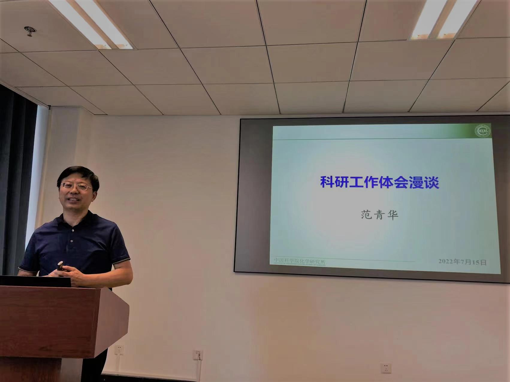 2022年7月15日,化学所青促会小组在6号楼718会议室举办午间咖啡厅活动,特别邀请党委书记范青华研究员结合个人奋斗经历谈科研体会。相关职能部门负责人和化学所青促会会员共40余人参加本次活动,青促会小组组长王太山主持活动。