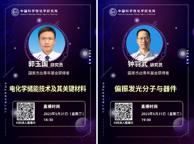 化学所2023年第二期招生宣讲直播活动于5月31日晚通过“中国科学院化学研究所Bilibili”官方帐号成功举行。郭玉国研究员、钟羽武研究员做客直播间,教育处易鹏处长主持本期活动。