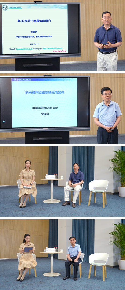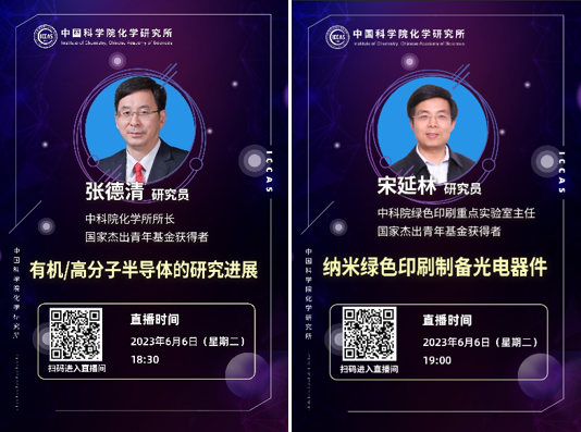 化学所2023年第三期招生宣讲直播活动于6月6日晚通过“中国科学院化学研究所Bilibili”官方帐号成功举行。张德清所长、宋延林研究员做客直播间,教育处易鹏处长主持本期活动。