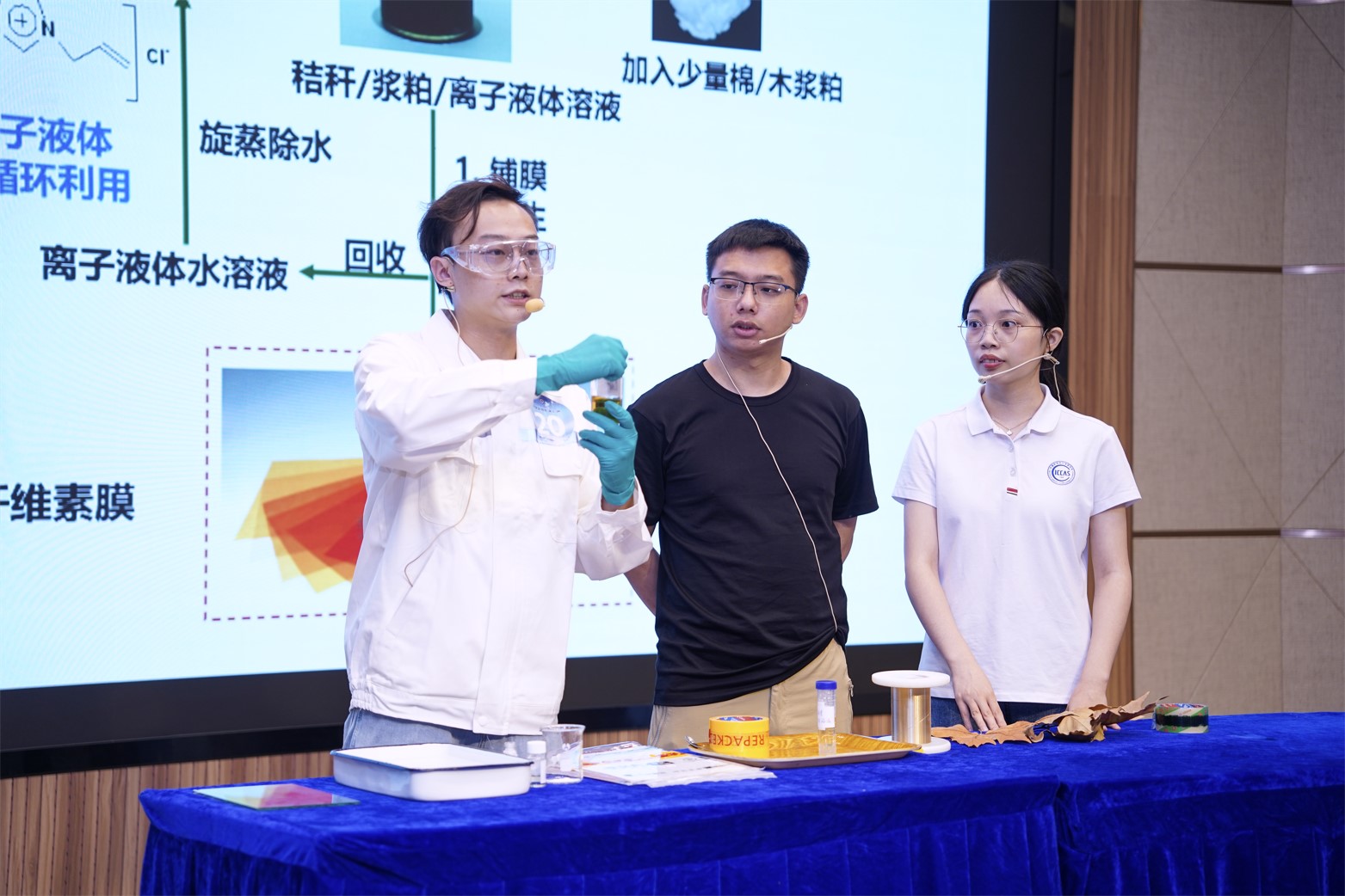 为深入贯彻党的二十大精神,进一步落实《关于新时代进一步加强科学技术普及工作的意见》,大力普及科学知识、弘扬科学精神、传播科学思想、倡导科学方法,2023年7月13-14日,中国科学院科学实验展演汇演在中国科学院武汉植物园举办,来自中国科学院18家院属单位的23支参赛队伍将科学知识与多种表演艺术融合,为公众带来一场趣味横生的科学实验秀,化学所代表队(邓博文、贾通通、王喜、许丽锌、张宗鹏)的作品《神奇的可降解材料》荣获此次活动一等奖。