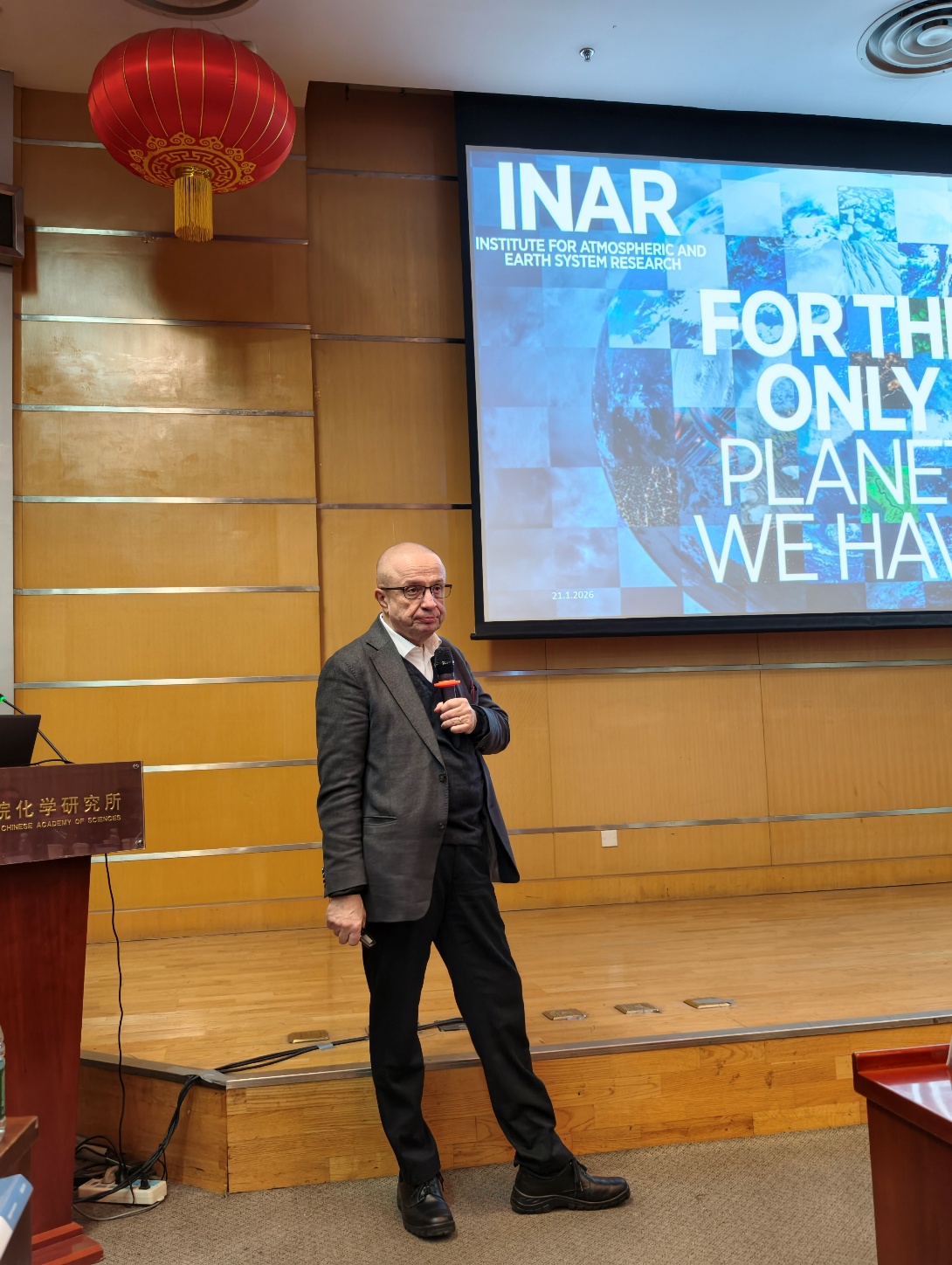 2026年1月21日,芬兰赫尔辛基大学Markku Kulmala教授访问化学所,并作题为“For the only planet we have”的分子科学论坛报告。党委书记、副所长范青华颁发了“分子科学论坛”荣誉证书,佟胜睿研究员主持讲座。