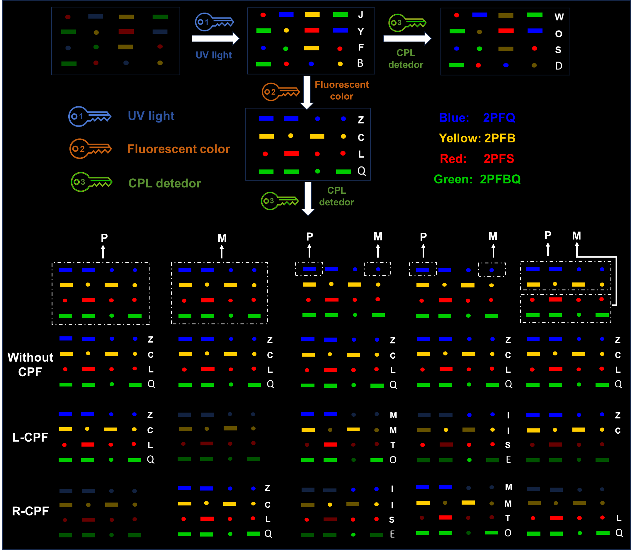 基于其全彩色和圆偏振双重光学特性,这种材料成为信息加密的理想载体。研究团队演示了一套莫尔斯电码三重加密系统:在自然光下,薄膜几乎隐形;在紫外光下,显现出第一层彩色图案信息;再分别透过左旋或右旋偏振片观看,又能解读出完全不同的第二层隐藏信息。这种将颜色、偏振与光照条件结合的多维加密方式,为高级防伪技术提供了全新的解决方案。