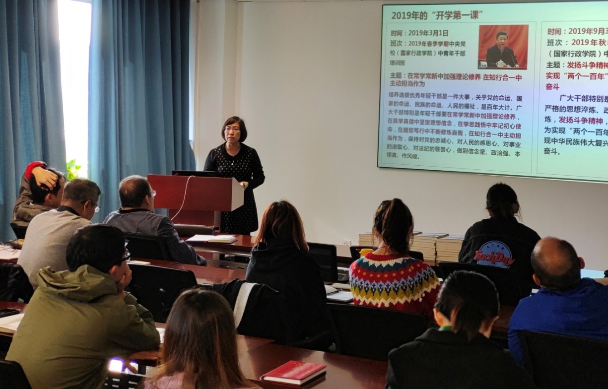 近年来,习近平总书记每年都到中央党校(国家行政学院)中青年干部培训班开班式上亲自讲授“第一课”,今年秋季的这期培训班是中国共产党成立100周年后举办的首期培训班。党支部书记董侠首先从“信念坚定、对党忠诚,注重实际、实事求是,勇于担当、善于作为,坚持原则、敢于斗争,严守规矩、不逾底线,勤学苦练、增强本领”几方面为大家解读了习近平总书记对年轻干部提出的要求,特别是“坚定理想信念是终身课题,需要常修常炼,要信一辈子、守一辈子”,“敢于坚持真理,善于独立思考,坚持求真务实”,“干事担事,是干部的职责所在,也是价值所在。党把干部放在各个岗位上是要大家担当干事,而不是做官享福”,“我们处在前所未有的变革时代,干着前无古人的伟大事业,如果知识不够、眼界不宽、能力不强,就会耽误事。一定要珍惜光阴、不负韶华,如饥似渴学习,一刻不停提高”几项要求,让大家深切感受到党和国家对年轻人的期望和重托。