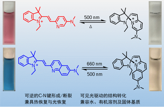 光致变色分子是指在光照刺激下能够发生分子结构异构化,并伴随着光学性质显著变化的一类分子,又被称为光分子开关。由于光照刺激具有非接触、时空分辨率高等特点,光致变色分子在信息存储、智能材料等领域展现出重要应用前景。发展新型光致分子异构反应和光分子开关体系,是光控材料研究的基础之一。目前,光分子开关体系主要依赖于双键的顺反异构或C-C、C-O键的可逆断裂/形成,而光诱导的C-N键...