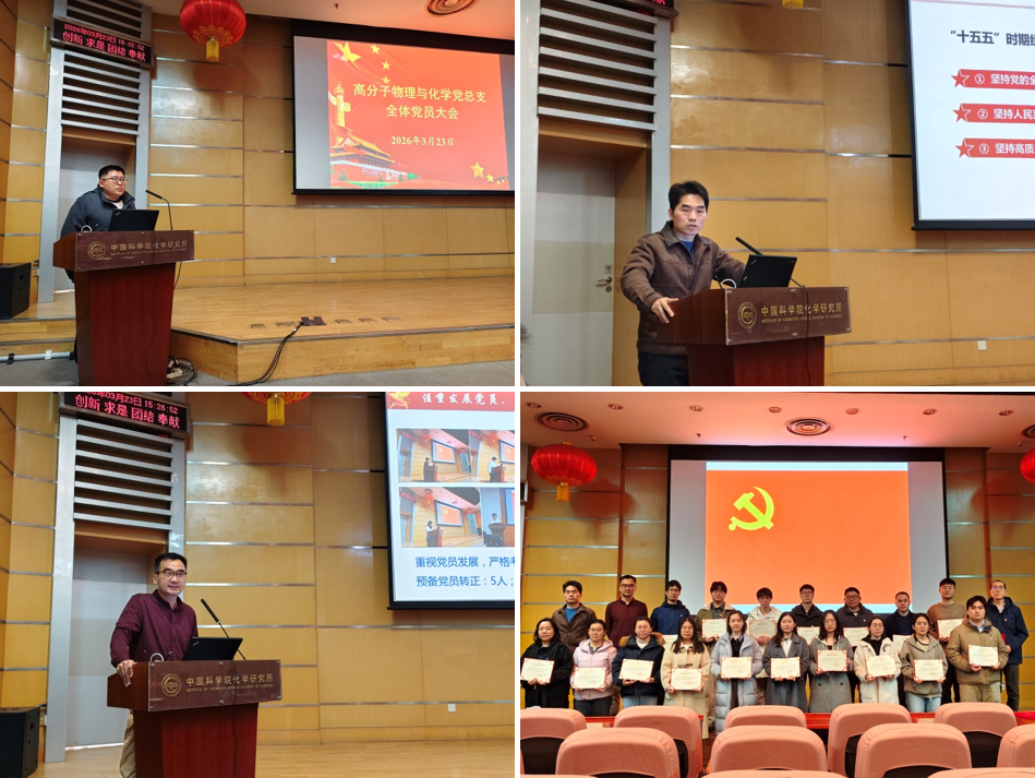 2026年3月27日,高分子物理与化学党总支召开全体党员大会,学习党的二十届四中全会精神、总结年度党建工作、表彰优秀党员及“四好”党员。会议由党总支副书记王星主持。